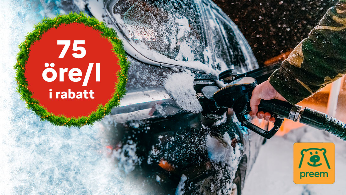 Passa på att tanka upp på Preem och betala med Citroënkortet inför alla resor i jul och få 75 öre/l i rabatt. Gäller hela julen, 13/12-31/12/2025.